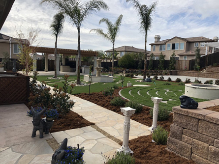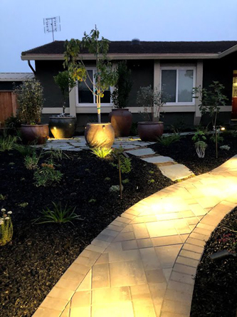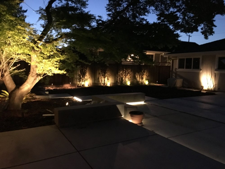 I'm very pleased with my front and back yards and have received many positive compliments from friends and family. A few minor tweeks I will work out with Bill in upcoming days (i.e. timer, sprinkler heads, plants by gate). I am glad my neighbor helped out with the split fence and that alleviated some costs. I'm enjoying the water feature, swing, and the look of the green area around the seat walls and garden area. The seat wall in the front yard is beautiful with the lights and plants. The cost of the project was a bit a more than I had anticipated but Bill had explained everything along the way. I'm very pleased that Bill kept excellent communication with me, day or night. Not what I had expected with contract work and the severe weather conditions that we experienced over the past few weeks. With that said, I have several friends who are looking to re-landscape their yards (Belmont and San Jose). I would like to refer them to Golden Sky Construction as I appreciated the communications, which is key in working together cohesively.
