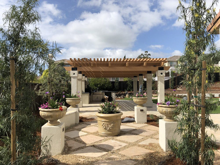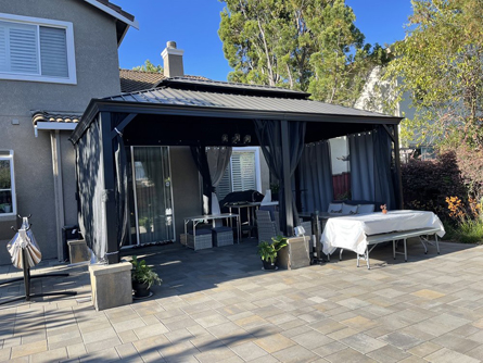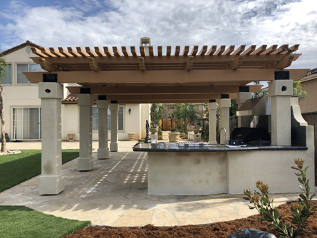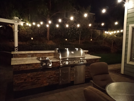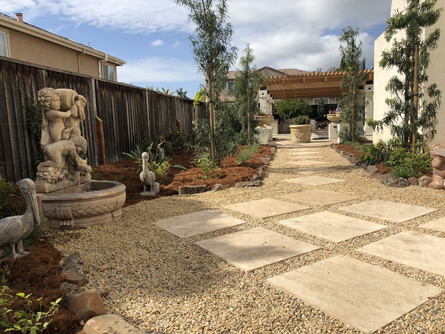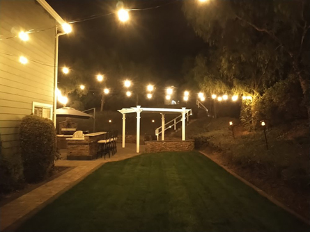 We had some draining issue in our backyard back on February 2021 and our grass became soggy after a rain storm. This prompted us to redesign our backyard and frontward with drought tolerance design. I do recommend that you should make a decision which trees to go prior to requesting for quotes. We had bushes and evergreens weed that grew big thru the years but they do provide privacy. Many of the tress dropped a large amount of leaves and debris, but it wasn't in our mind to remove. We got quotes for everything but that side. Bill had 2 Foremen, Autoro and Hector. Auroro was assigned to our project. The foreman can drive the tractors, cutting pavers, and overall heading the project. Autoro and his team arrived at 7am and end their day around 3pm. During pandemic, the prices of wood went up so instead of building a roof covered gazebo, we ordered on at Costco online. I waned a sink and mini fridge along with waterfall. They automatically added water pump behind the waterfall so there's no manual steps of pouring water into the fountain. Bill's electrician contract, Javier, was also great to work with. He connected the electrical wiring for backyard to a different switch box not being used so they don't short circuit the rest of the house. He installed the chandelier under the gazebo which we used a lot now. When the gazebo was being built, our foreman pointed out that the gazebo will be lower than the screen door so we asked them to build 6 posts to raise the gazebo. This is where expertise really matters, Autoro took off for family vacation and Hector came by to continue the work with same kind of professionalism. Bill also worked with a landscape designer, Todd, who stopped by and recommended plants for the yard if you have no idea what you want planted. It's an additional cost but, it's worth it. His vision to spread out plants a certain way just made it for. The path lights added a nice touch at the end as well. Estimate for our project was 4-6 weeks, and they finished around that time. After completion of the project, we had a lot of work picking up the leaves due to unattended one side. We end up calling a tree trimming service to remove the tall trees and stumps. We also ordered more sweet California bay trees to fill up the space. Make sure you determine your max spending limit as things do add up! Our experience with Golden Sky was a positive one and we do love our new pavers and the irrigation. All the plants are happy .Thank you Bill and team!