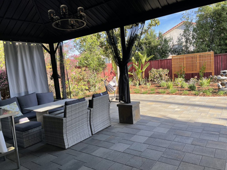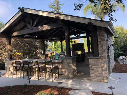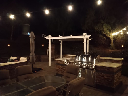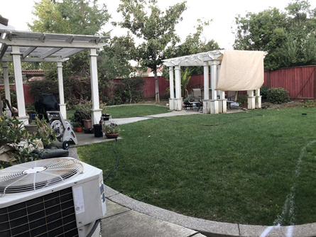 We had some draining issue in our backyard back on February 2021 and our grass became soggy after a rain storm. This prompted us to redesign our backyard and frontward with drought tolerance design. I do recommend that you should make a decision which trees to go prior to requesting for quotes. We had bushes and evergreens weed that grew big thru the years but they do provide privacy. Many of the tress dropped a large amount of leaves and debris, but it wasn't in our mind to remove. We got quotes for everything but that side. Bill had 2 Foremen, Autoro and Hector. Auroro was assigned to our project. The foreman can drive the tractors, cutting pavers, and overall heading the project. Autoro and his team arrived at 7am and end their day around 3pm. During pandemic, the prices of wood went up so instead of building a roof covered gazebo, we ordered on at Costco online. I waned a sink and mini fridge along with waterfall. They automatically added water pump behind the waterfall so there's no manual steps of pouring water into the fountain. Bill's electrician contract, Javier, was also great to work with. He connected the electrical wiring for backyard to a different switch box not being used so they don't short circuit the rest of the house. He installed the chandelier under the gazebo which we used a lot now. When the gazebo was being built, our foreman pointed out that the gazebo will be lower than the screen door so we asked them to build 6 posts to raise the gazebo. This is where expertise really matters, Autoro took off for family vacation and Hector came by to continue the work with same kind of professionalism. Bill also worked with a landscape designer, Todd, who stopped by and recommended plants for the yard if you have no idea what you want planted. It's an additional cost but, it's worth it. His vision to spread out plants a certain way just made it for. The path lights added a nice touch at the end as well. Estimate for our project was 4-6 weeks, and they finished around that time. After completion of the project, we had a lot of work picking up the leaves due to unattended one side. We end up calling a tree trimming service to remove the tall trees and stumps. We also ordered more sweet California bay trees to fill up the space. Make sure you determine your max spending limit as things do add up! Our experience with Golden Sky was a positive one and we do love our new pavers and the irrigation. All the plants are happy .Thank you Bill and team!