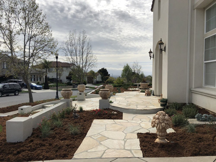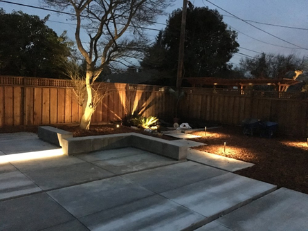 I'm very pleased with my front and back yards and have received many positive compliments from friends and family. A few minor tweeks I will work out with Bill in upcoming days (i.e. timer, sprinkler heads, plants by gate). I am glad my neighbor helped out with the split fence and that alleviated some costs. I'm enjoying the water feature, swing, and the look of the green area around the seat walls and garden area. The seat wall in the front yard is beautiful with the lights and plants. The cost of the project was a bit a more than I had anticipated but Bill had explained everything along the way. I'm very pleased that Bill kept excellent communication with me, day or night. Not what I had expected with contract work and the severe weather conditions that we experienced over the past few weeks. With that said, I have several friends who are looking to re-landscape their yards (Belmont and San Jose). I would like to refer them to Golden Sky Construction as I appreciated the communications, which is key in working together cohesively.